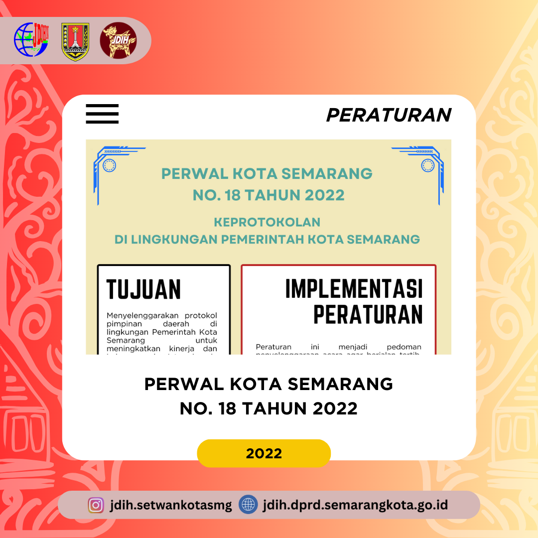 Peraturan Wali Kota Semarang Nomor 18 Tahun 2022 tentang Keprotokolan di Lingkungan Pemerintah Kota Semarang...
