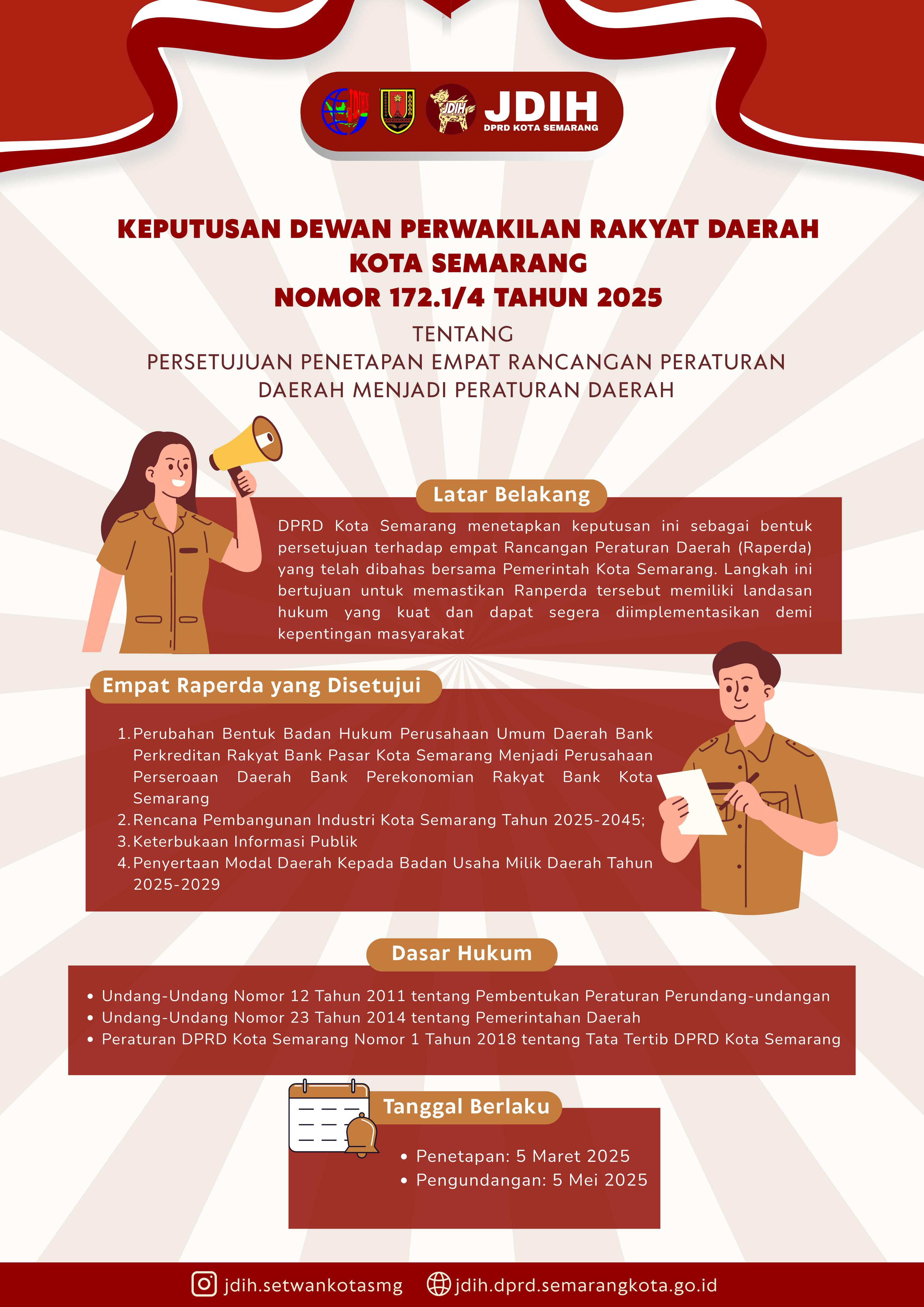 Keputusan Dewan Perwakilan Rakyat Daerah Kota Semarang Nomor 172.1/5 Tahun 2025 tentang Persetujuan Penetapan Empat Rancangan Peraturan Daerah Menjadi Peraturan Daerah...