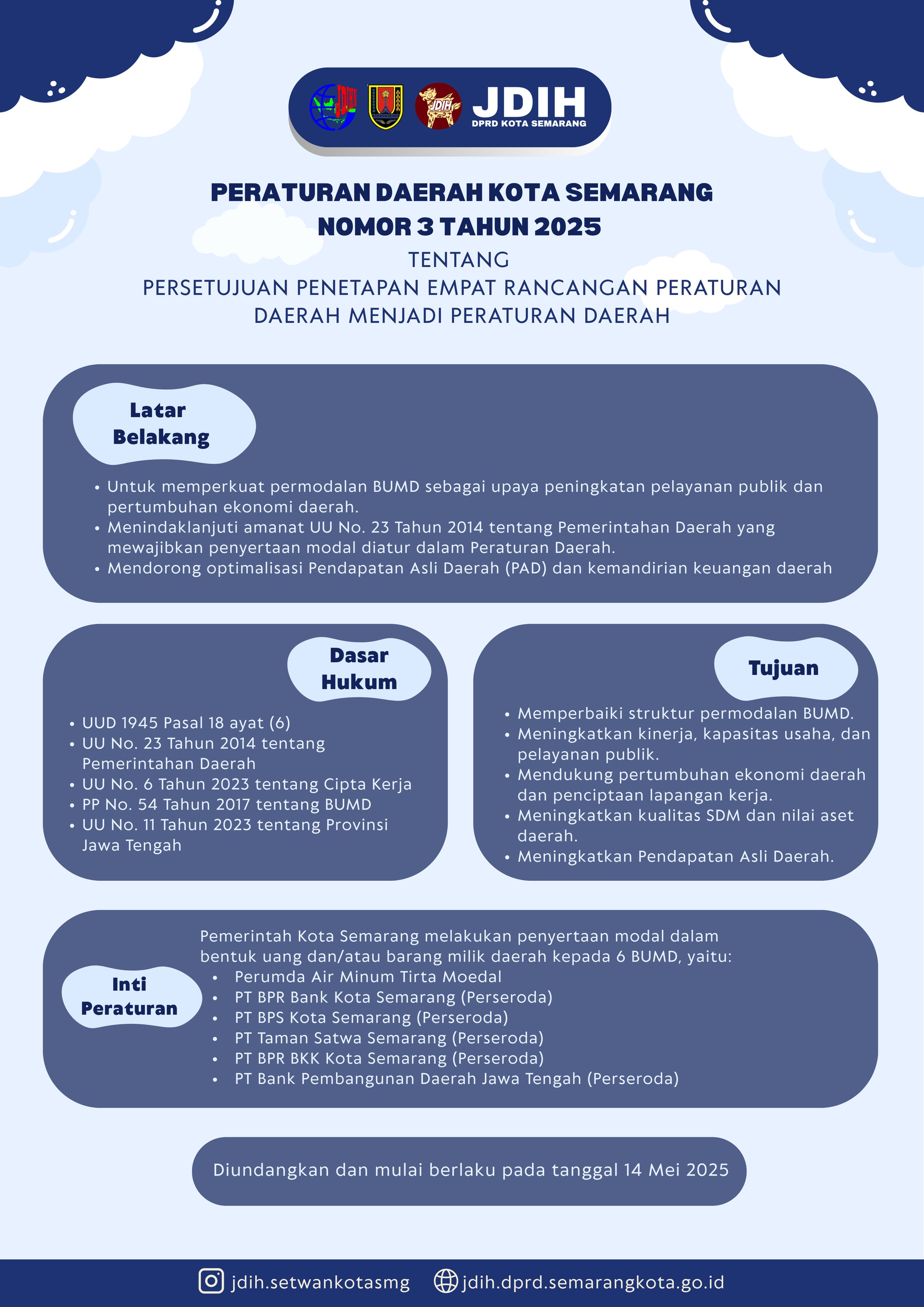 Peraturan Daerah Kota Semarang Nomor 3 Tahun 2025 tentang Penyertaan Modal Daerah pada Badan Usaha Milik Daerah (BUMD) Tahun 2025 - 2029...